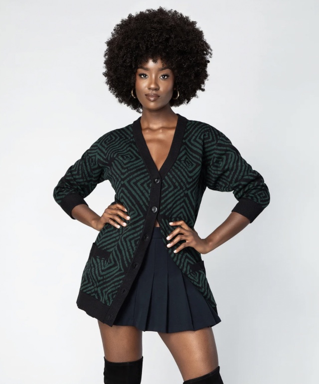& Free ShippingThe Mansa Cardigan is a modern African take on a classic Grandpa sweater. It features a slouchy oversized fit with a v-neck and button front in the moody green and black Malachite Diamond Adire print. Keep cozy this fall and winter season in the stylish Mansa sweater.